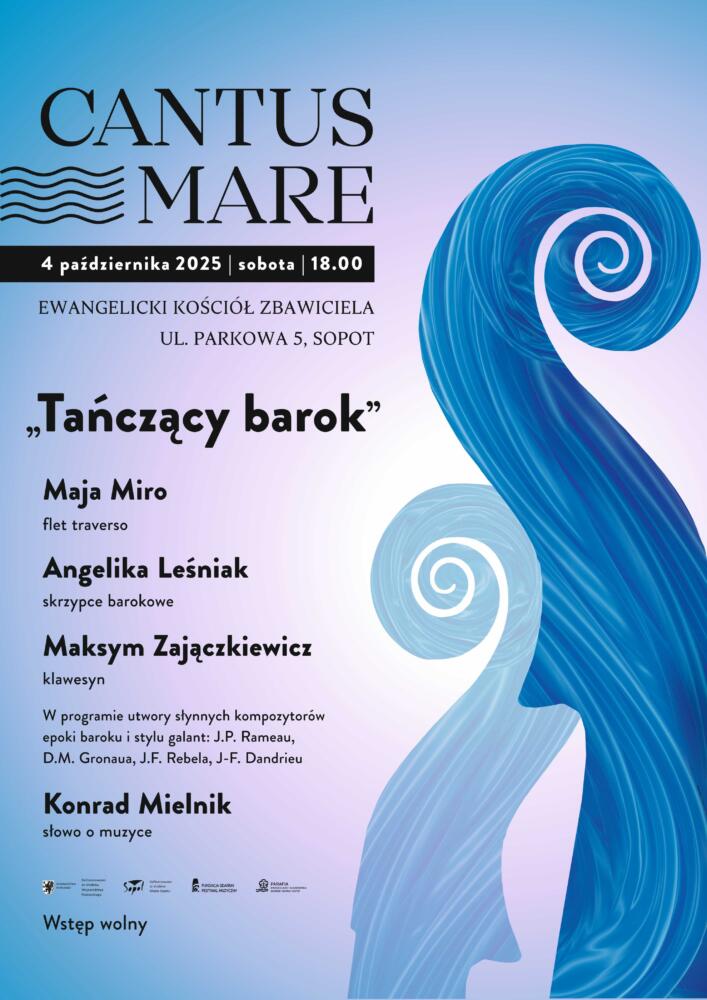 Parafia Ewangelicko-Augsburska oraz Fundacja Gdański Festiwal Muzyczny serdecznie zapraszają kolejny koncert z cyklu Cantus Mare, który odbędzie się w sobotę 4 października 2025 r., o godz. 18.00. Cechą naszego cyklu koncertowego jest bogactwo stylów muzycznych – tym razem powróci muzyka epoki baroku i styl galant.