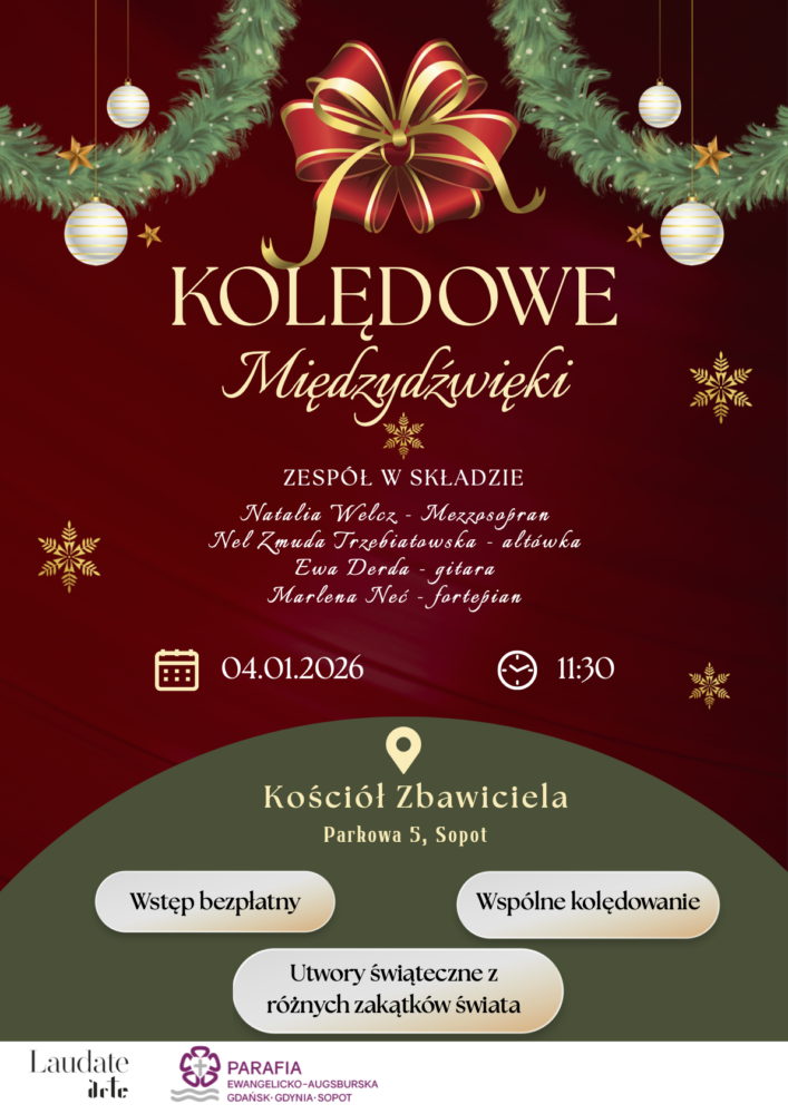 Okres Bożego Narodzenia to czas, w którym muzyka w szczególny sposób pomaga zatrzymać się, wyciszyć i na nowo usłyszeć to, co w świątecznym przesłaniu najistotniejsze. W taką właśnie przestrzeń zaprasza koncert „Kolędowe Międzydźwięki”, który odbędzie się 4 stycznia 2026 roku o godz. 11.30 w sopockim kościele Zbawiciela przy ul. Parkowej 5.