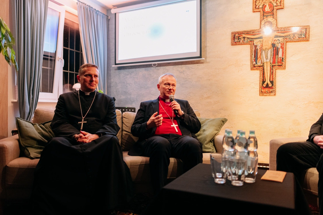 Po nabożeństwie, w domu wspólnoty Hesed, odbyło się spotkanie o wyjątkowo ciepłym, niemal rodzinnym charakterze. Była to przestrzeń nie tyle oficjalnych przemówień, ile rozmowy i świadectwa. W panelu uczestniczyli bp Piotr Przyborek, bp Marcin Hintz oraz ks. Sebastian Maria Niedźwiedziński, a rozmowę prowadził Tymoteusz Filar.